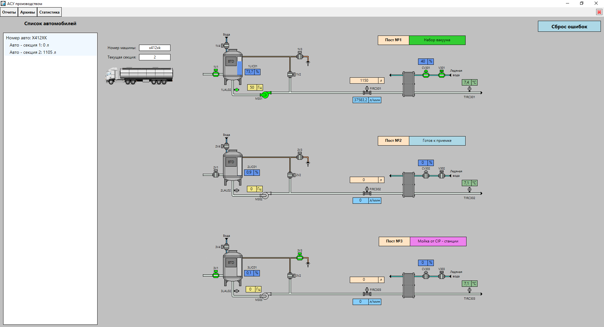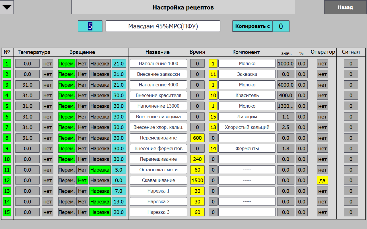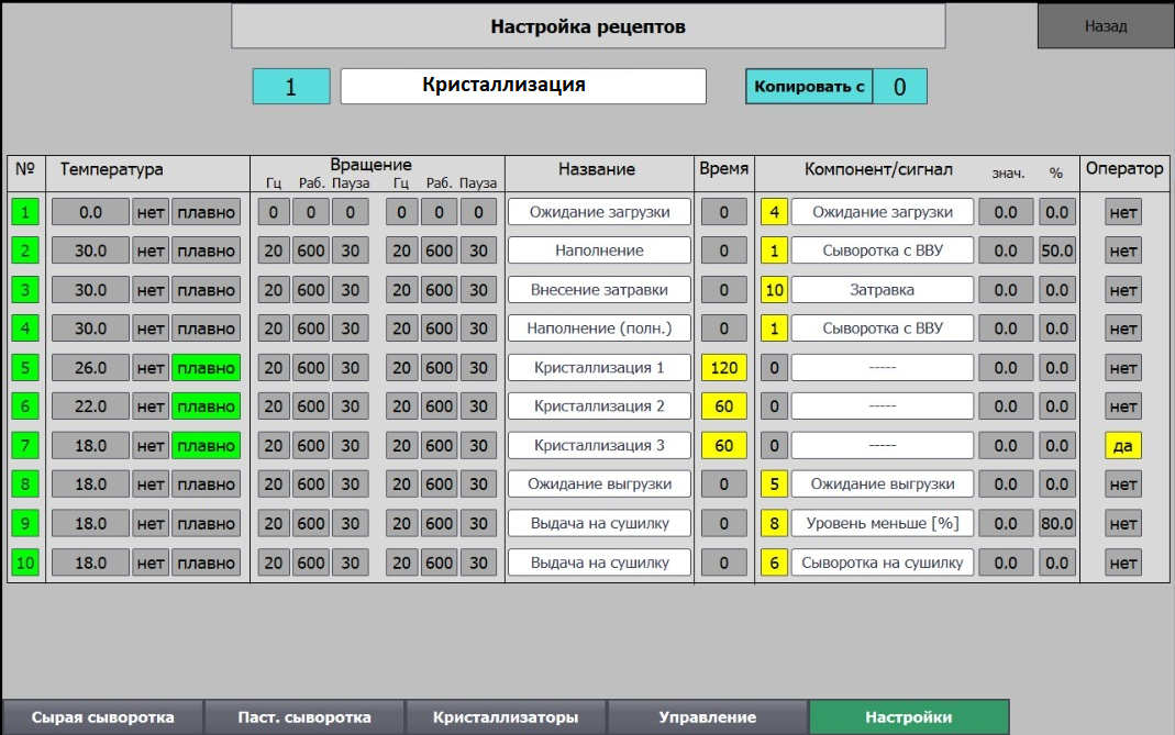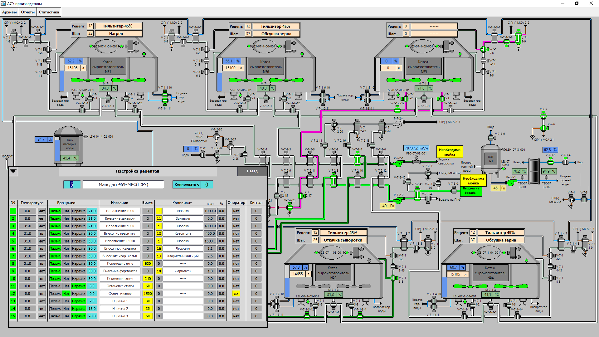 Управление участками ведется путем задания производственной программы из рецептов, включения маршрутов или задания очереди выполнения операций. Каждый участок стал максимально автоматизирован.