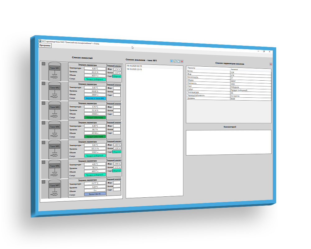 На каждом технологическом этапе внедрена система ввода и контроля лабораторных показателей продукции.